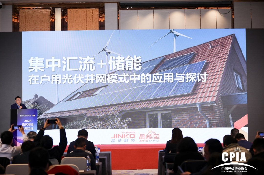 k8凯发科技户用事业部品牌副总监周新亮代表晶能宝在大会上进行了内容分享,他结合行业发展趋势和机遇,深入剖析了晶能宝的平台实力、创新应用以及成功案例,尤其是晶能宝在集中汇流和储能在户用光伏并网模式中的实际应用案例——山西省晋中市祁县峪口乡段家窑村整村汇流。
